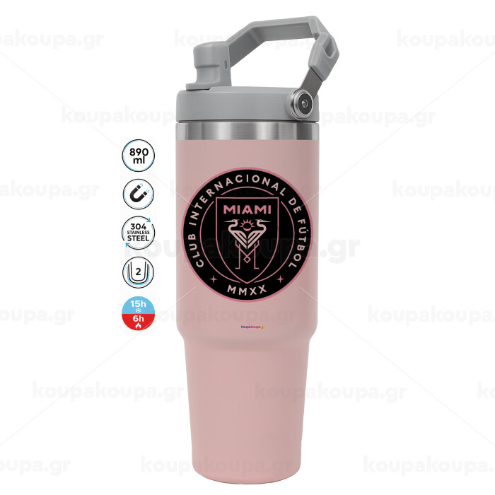 Inter Miami CF, Pink color, 890ml (30oz) stainless Steel Tumbler with Handle