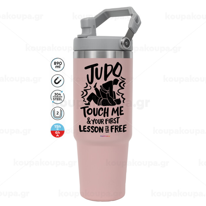 Judo Touch Me And Your First Lesson Is Free, Pink color, 890ml (30oz) stainless Steel Tumbler with Handle