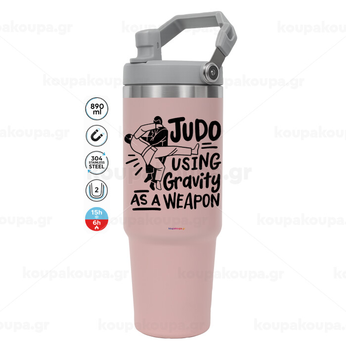 Judo using gravity as a weapon, Pink color, 890ml (30oz) stainless Steel Tumbler with Handle