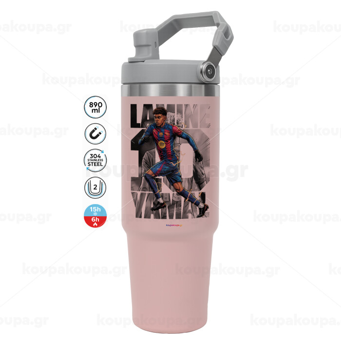 Lamine Yamal (Λαμίν Γιαμάλ), Pink color, 890ml (30oz) stainless Steel Tumbler with Handle