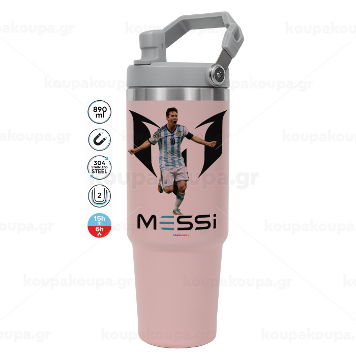 Lionel Messi, Pink color, 890ml (30oz) stainless Steel Tumbler with Handle