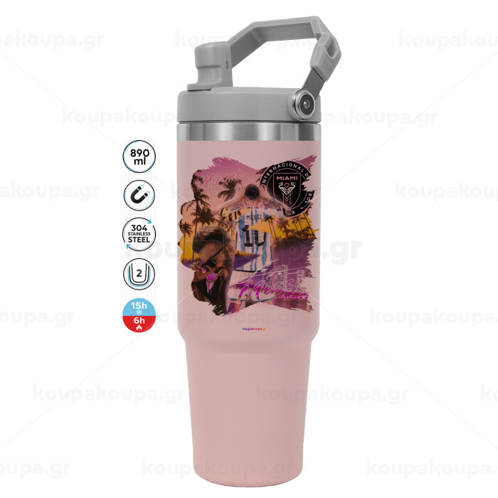 Lionel Messi Miami, Pink color, 890ml (30oz) stainless Steel Tumbler with Handle