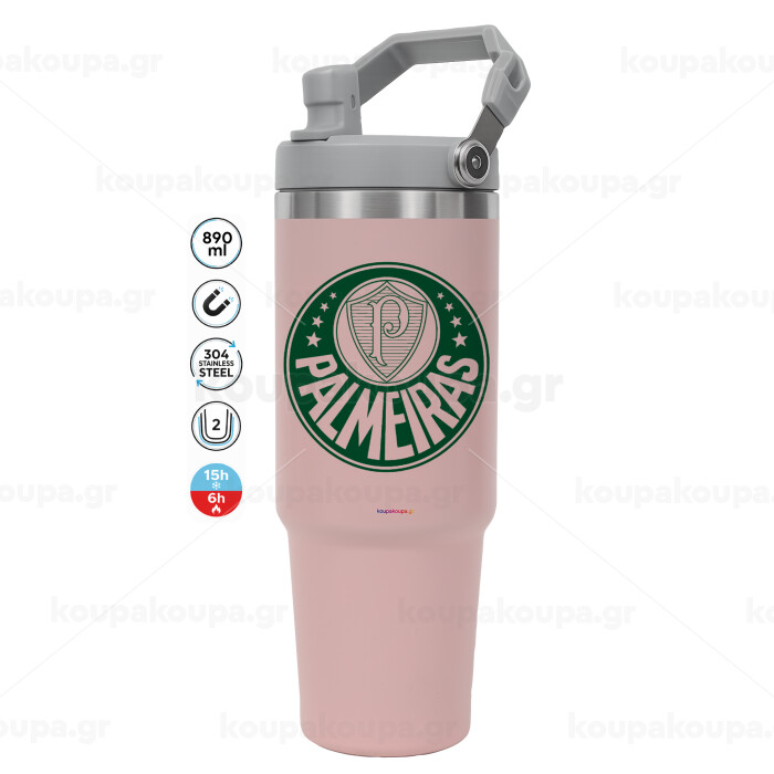 Palmeiras, Pink color, 890ml (30oz) stainless Steel Tumbler with Handle