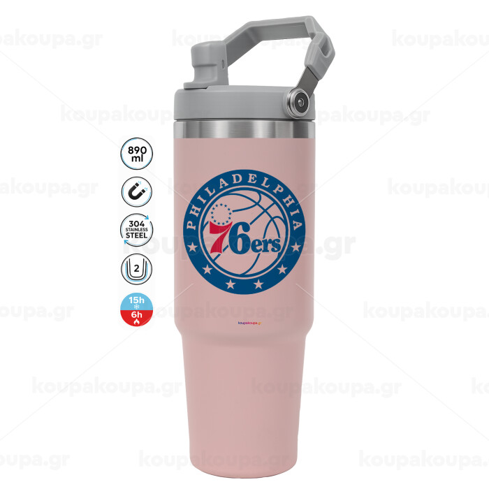 Philadelphia 76ers, Pink color, 890ml (30oz) stainless Steel Tumbler with Handle