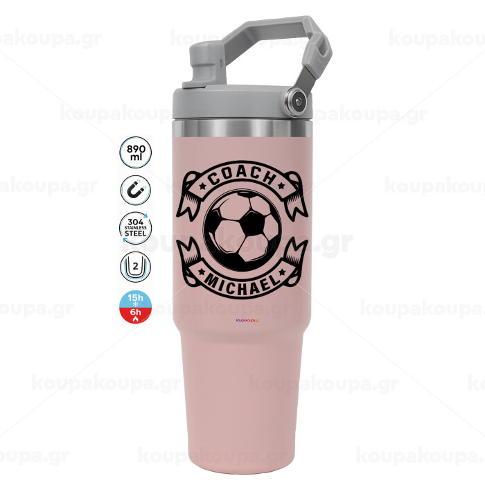 Soccer coach, Pink color, 890ml (30oz) stainless Steel Tumbler with Handle