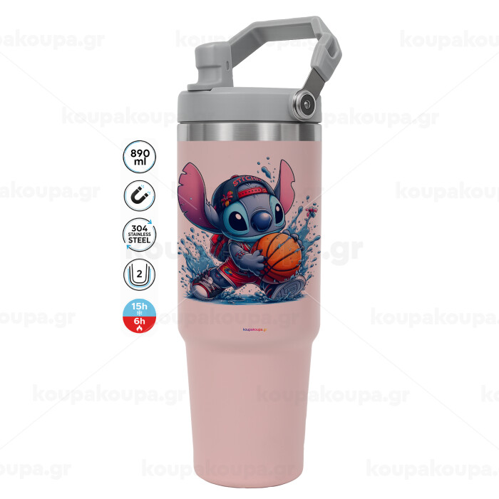 Stitch Basketball, Pink color, 890ml (30oz) stainless Steel Tumbler with Handle