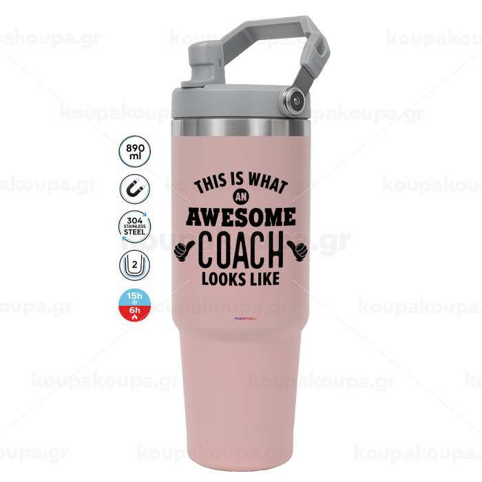 This is what an awesome COACH looks like!, Pink color, 890ml (30oz) stainless Steel Tumbler with Handle