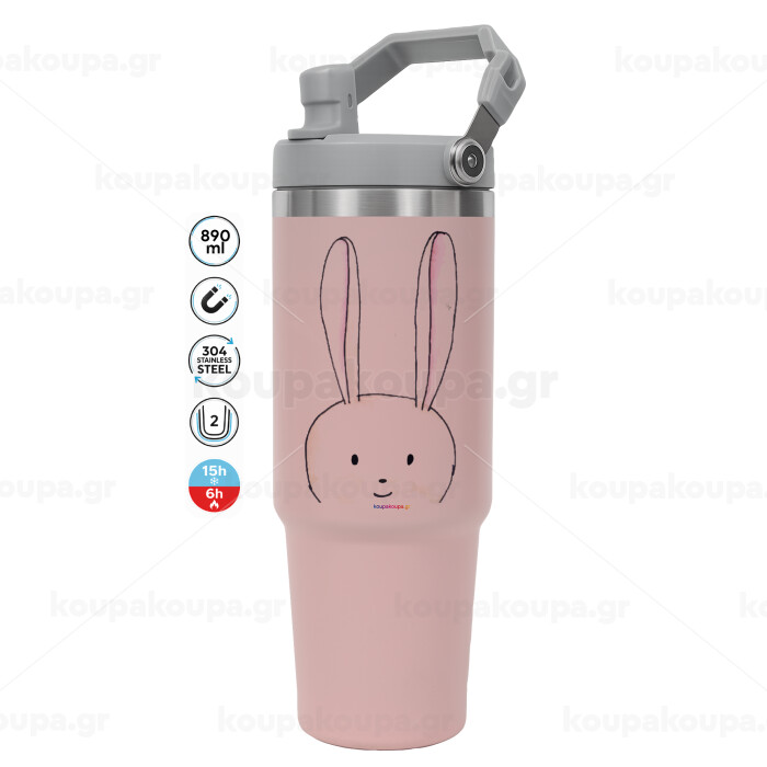 Ο λαγός του πάσχα, Pink color, 890ml (30oz) stainless Steel Tumbler with Handle
