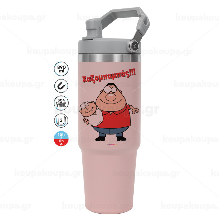 Χαζομπαμπάς, Pink color, 890ml (30oz) stainless Steel Tumbler with Handle