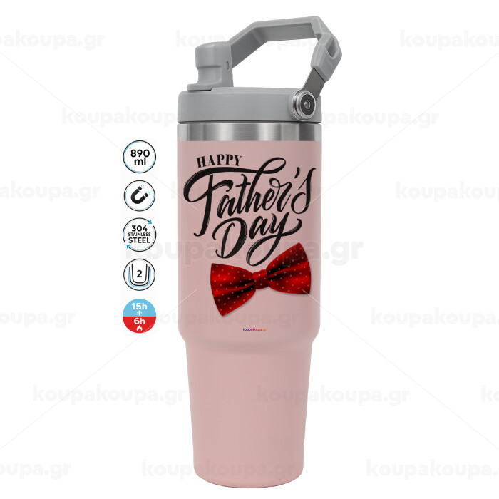 Happy father's Days, Pink color, 890ml (30oz) stainless Steel Tumbler with Handle