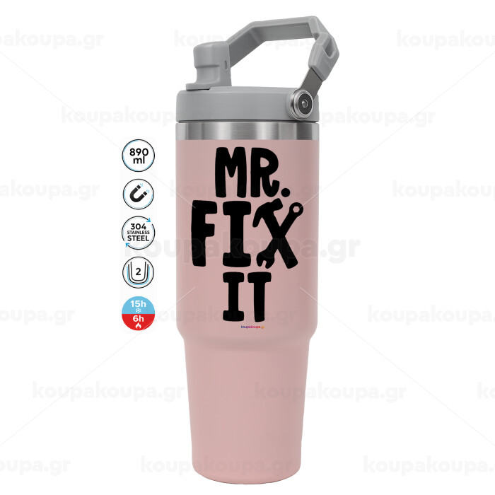 Mr fix it, Pink color, 890ml (30oz) stainless Steel Tumbler with Handle