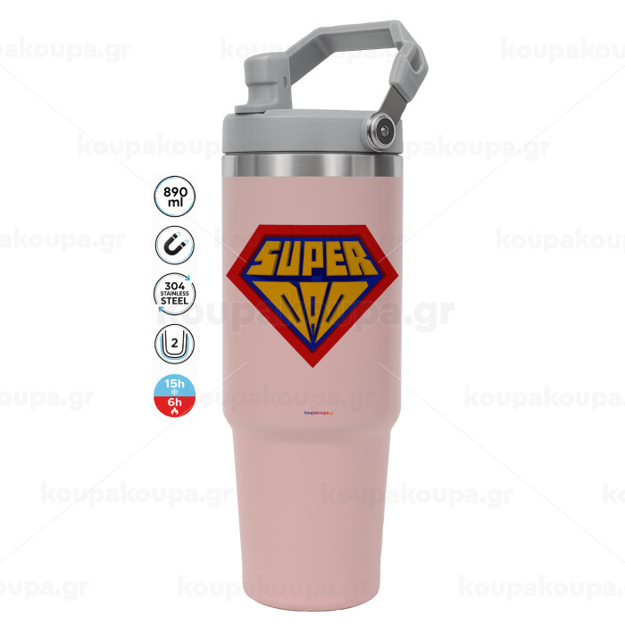 Super Dad 3D, Pink color, 890ml (30oz) stainless Steel Tumbler with Handle