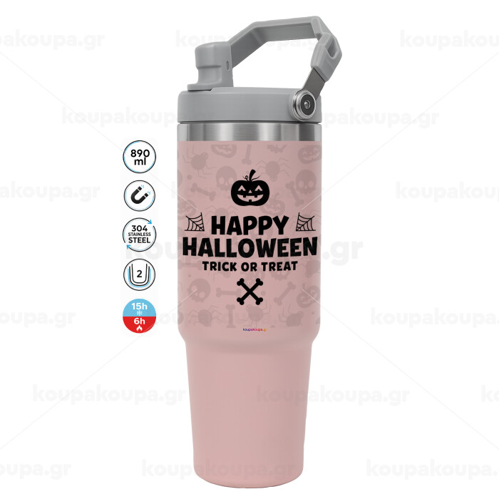 Happy Halloween pumpkin, Pink color, 890ml (30oz) stainless Steel Tumbler with Handle