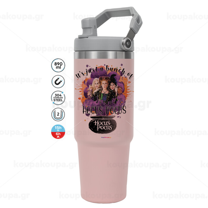 Hocus Pocus, Pink color, 890ml (30oz) stainless Steel Tumbler with Handle