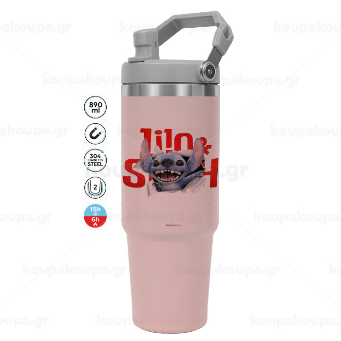 Stitch movie, Pink color, 890ml (30oz) stainless Steel Tumbler with Handle
