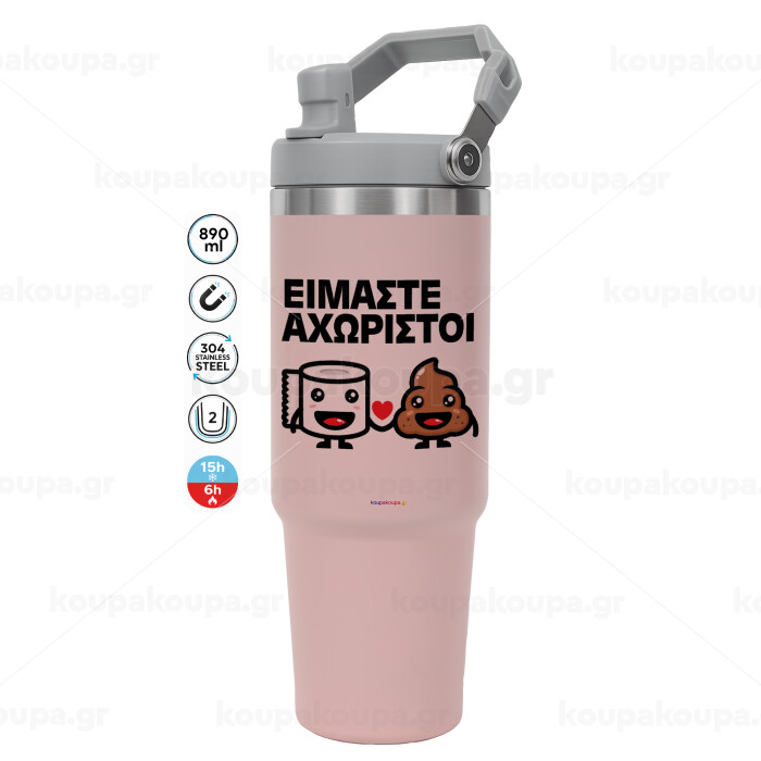 Είμαστε αχώριστοι, Pink color, 890ml (30oz) stainless Steel Tumbler with Handle