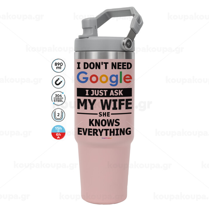 I don't need Google, just ask my WIFE, Pink color, 890ml (30oz) stainless Steel Tumbler with Handle