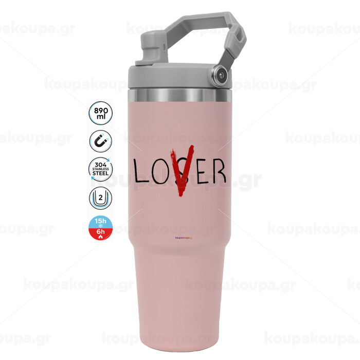 IT Lov(s)er, Pink color, 890ml (30oz) stainless Steel Tumbler with Handle
