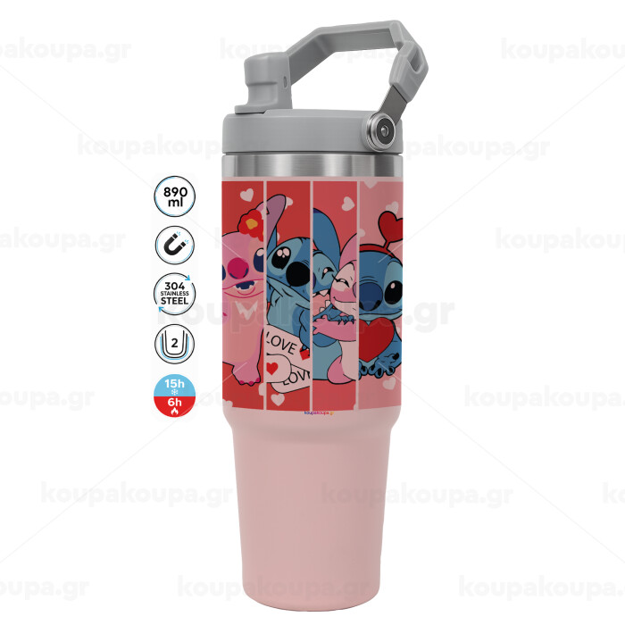 Lilo & Stitch Love, Pink color, 890ml (30oz) stainless Steel Tumbler with Handle