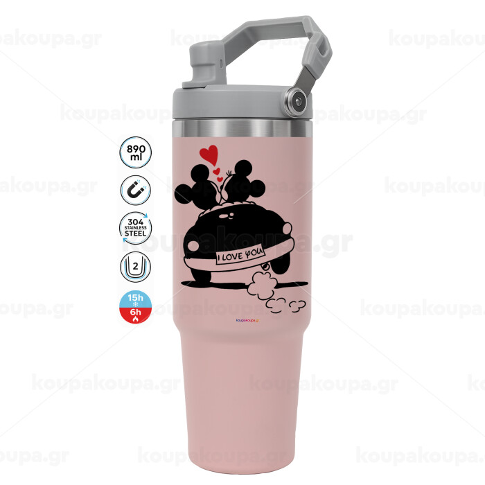 Love Car, Pink color, 890ml (30oz) stainless Steel Tumbler with Handle