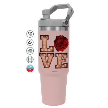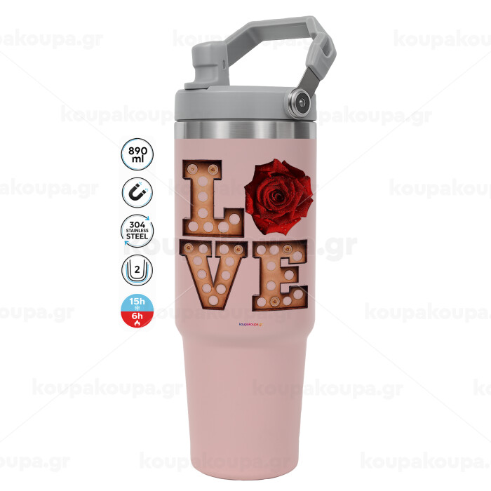 Love lights and roses, Pink color, 890ml (30oz) stainless Steel Tumbler with Handle