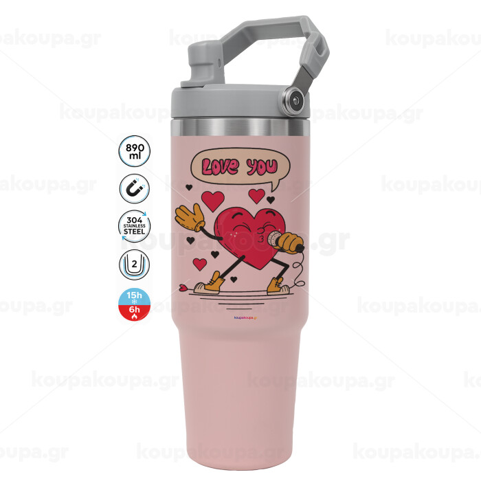 LOVE YOU SINGER!!!, Pink color, 890ml (30oz) stainless Steel Tumbler with Handle