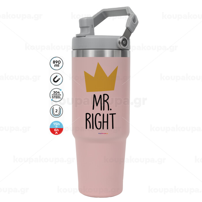Mr right, Pink color, 890ml (30oz) stainless Steel Tumbler with Handle
