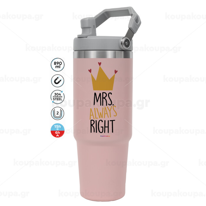 Mrs "Always" right, Pink color, 890ml (30oz) stainless Steel Tumbler with Handle