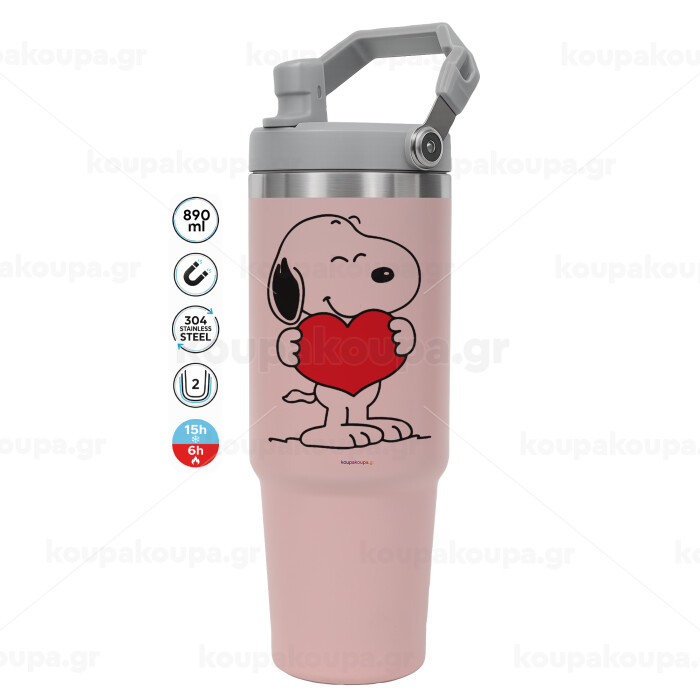 Snoopy takemy heart, Pink color, 890ml (30oz) stainless Steel Tumbler with Handle