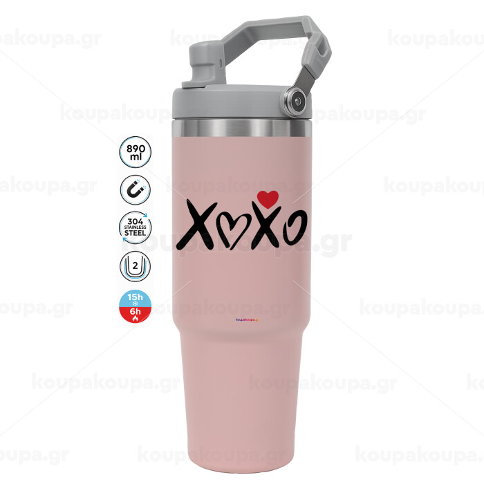 xoxo, Pink color, 890ml (30oz) stainless Steel Tumbler with Handle
