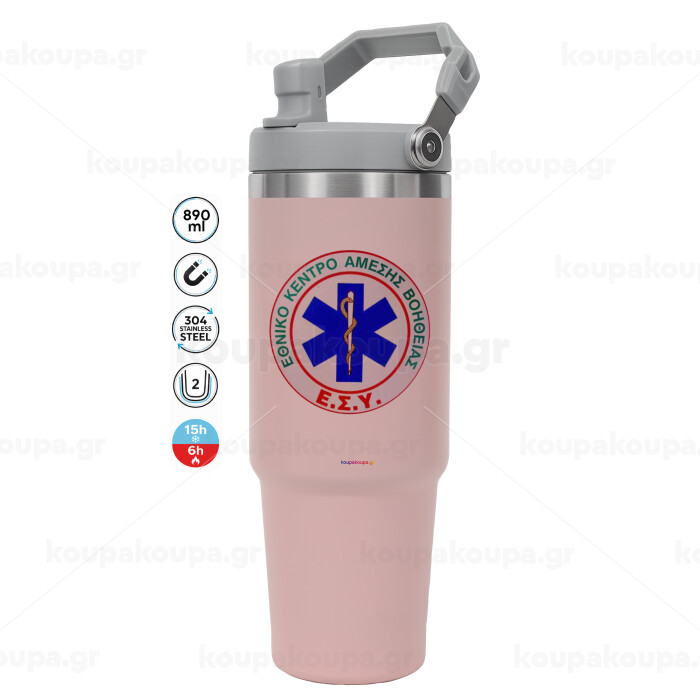 ΕΚΑΒ, Pink color, 890ml (30oz) stainless Steel Tumbler with Handle
