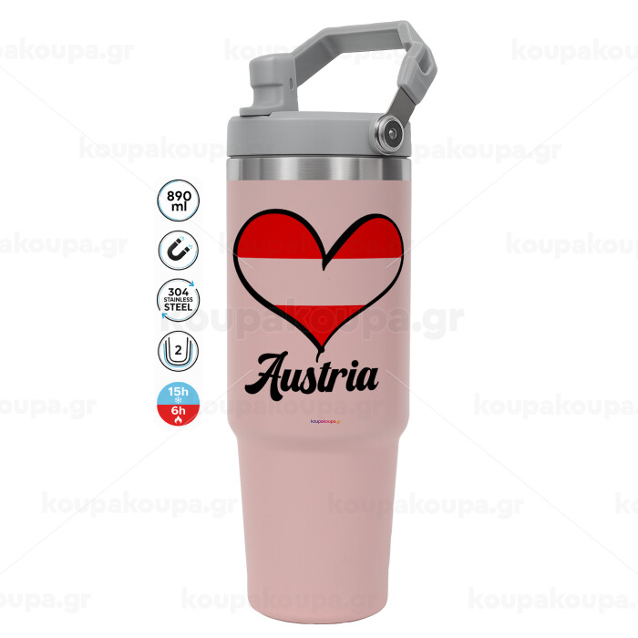 Austria flag, PINK Travel Tumbler with Handle 890ml