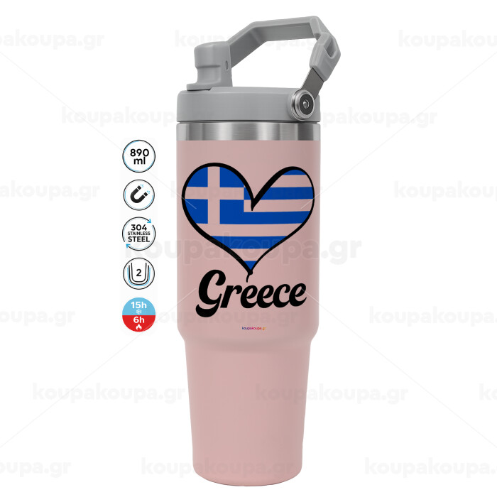 Greece flag, PINK Travel Tumbler with Handle 890ml