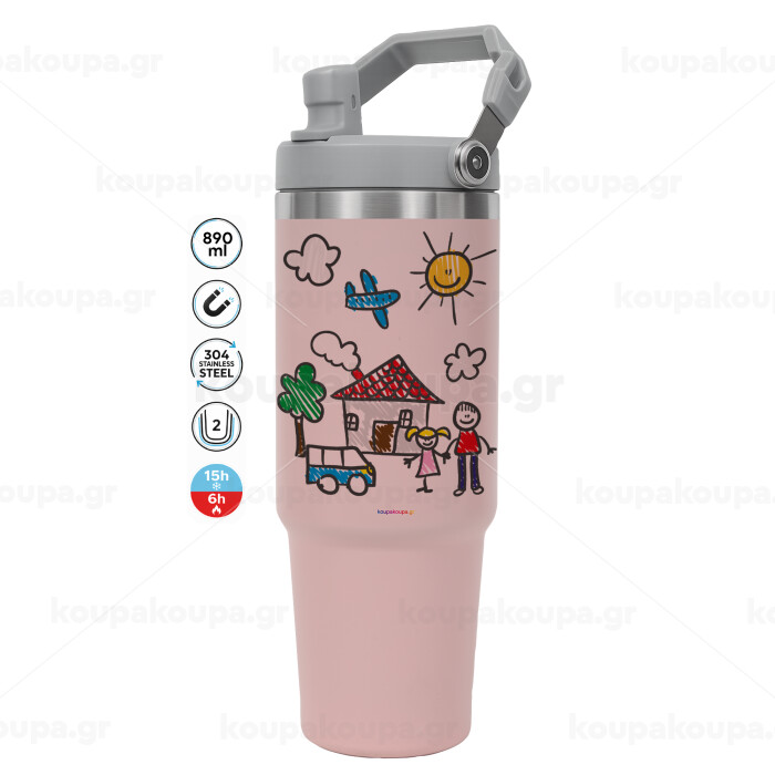 Children's drawing, Pink color, 890ml (30oz) stainless Steel Tumbler with Handle