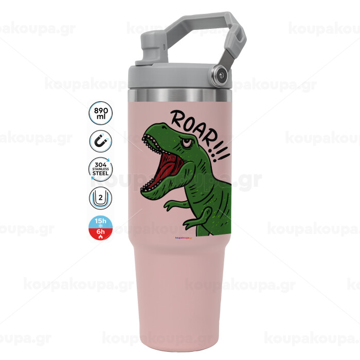 Dyno roar!!!, Pink color, 890ml (30oz) stainless Steel Tumbler with Handle