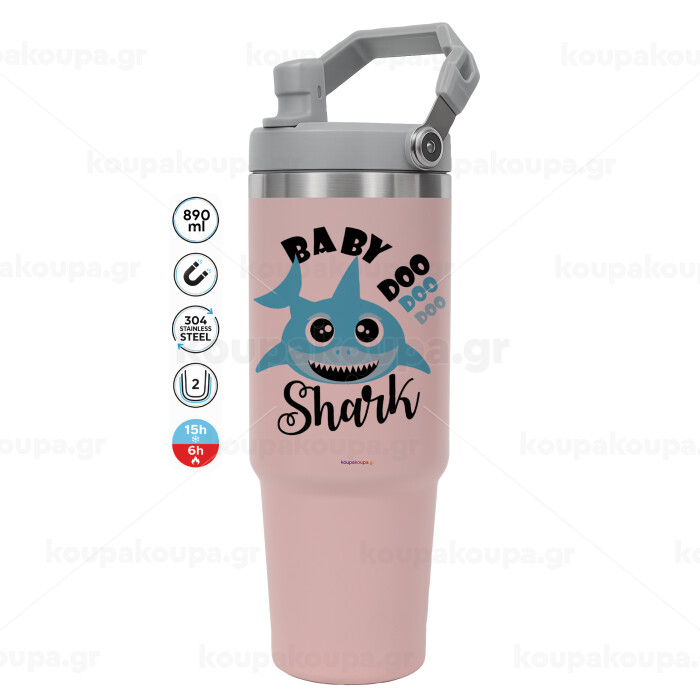 Baby Shark (boy), Pink color, 890ml (30oz) stainless Steel Tumbler with Handle