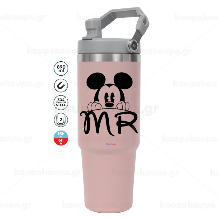 Mikey Mr, Pink color, 890ml (30oz) stainless Steel Tumbler with Handle