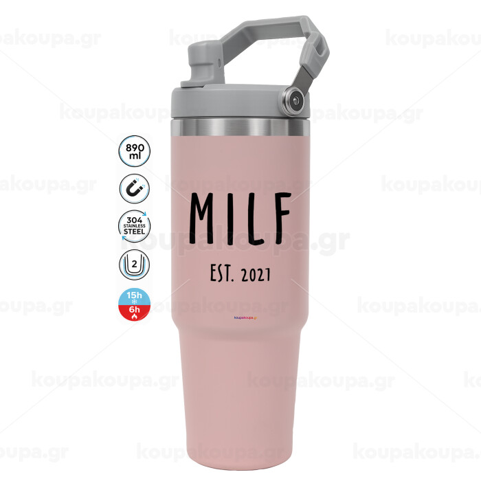 MILF, Pink color, 890ml (30oz) stainless Steel Tumbler with Handle