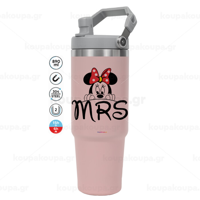 Minnie Mrs, Pink color, 890ml (30oz) stainless Steel Tumbler with Handle