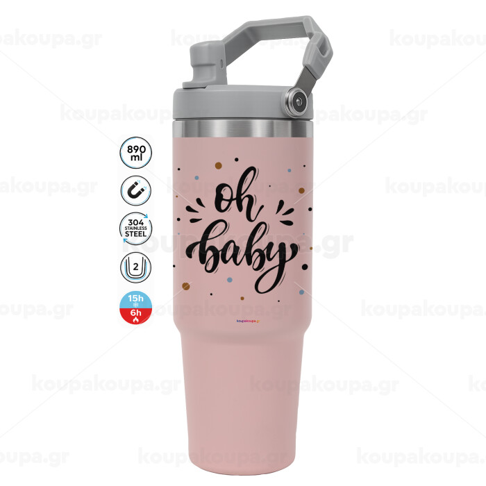 Oh baby, Pink color, 890ml (30oz) stainless Steel Tumbler with Handle