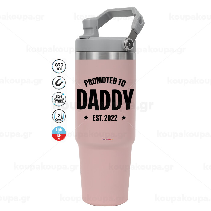Promoted to Daddy, Pink color, 890ml (30oz) stainless Steel Tumbler with Handle