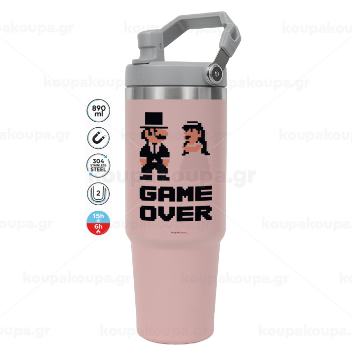 8bit Game Over Couple Wedding, Pink color, 890ml (30oz) stainless Steel Tumbler with Handle