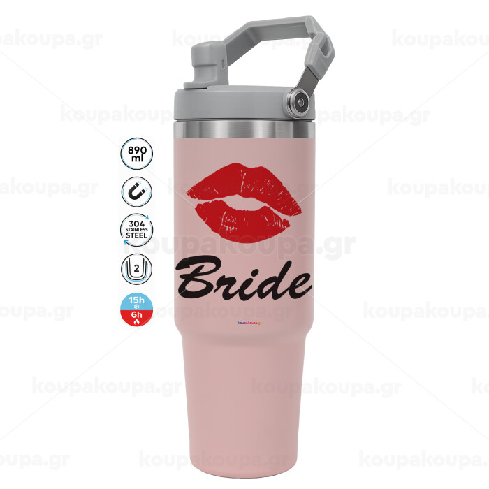 Bride kiss, Pink color, 890ml (30oz) stainless Steel Tumbler with Handle