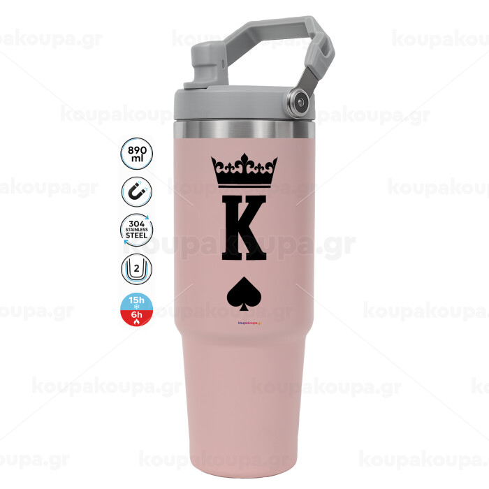 King, Pink color, 890ml (30oz) stainless Steel Tumbler with Handle