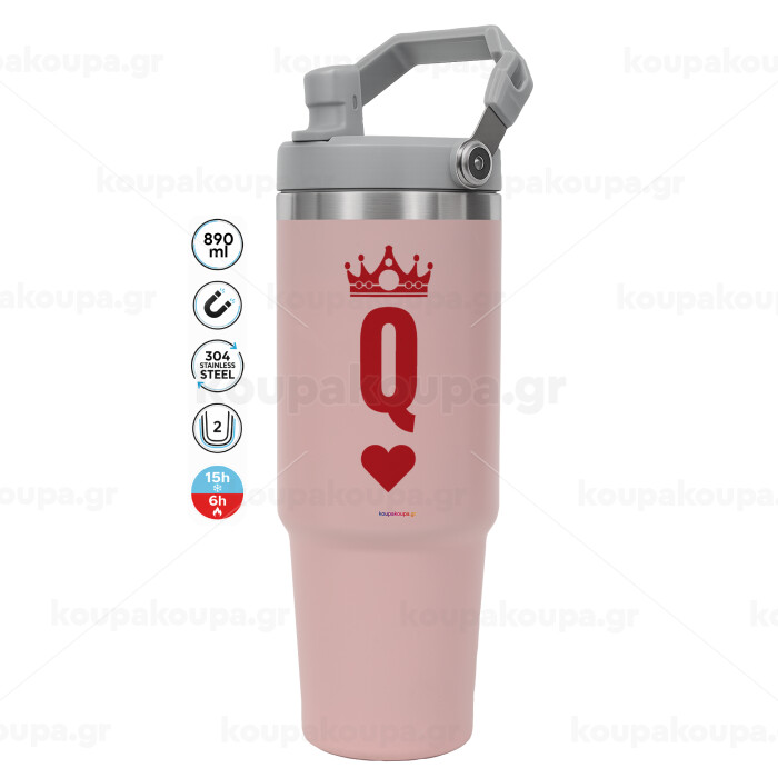 Queen, Pink color, 890ml (30oz) stainless Steel Tumbler with Handle