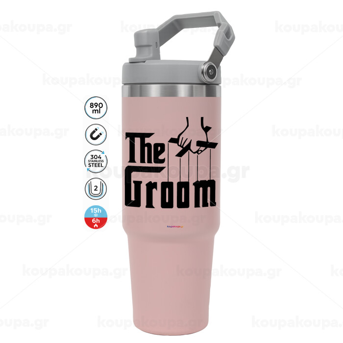 The Groom, Pink color, 890ml (30oz) stainless Steel Tumbler with Handle