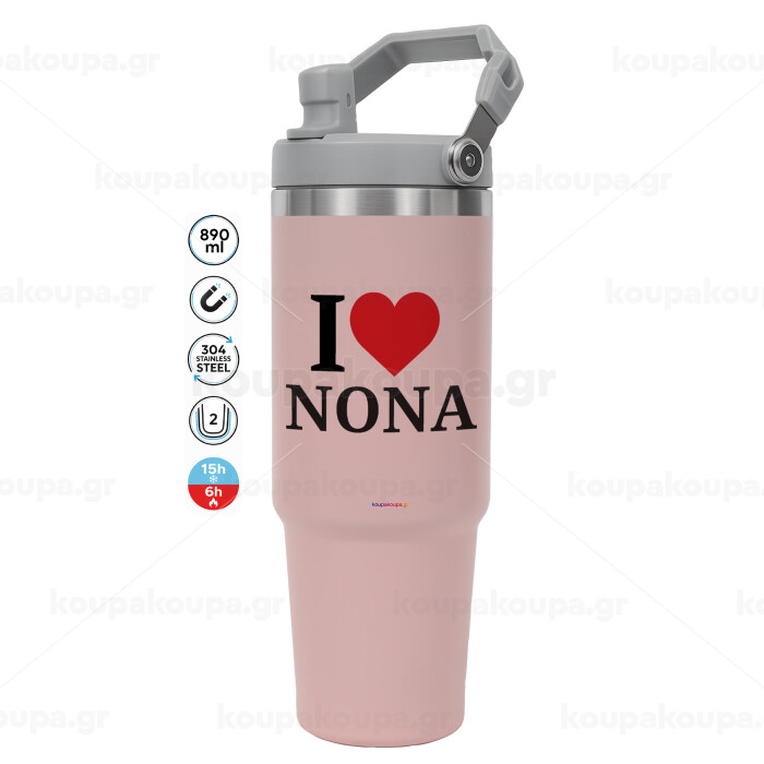 I Love ΝΟΝΑ, Pink color, 890ml (30oz) stainless Steel Tumbler with Handle