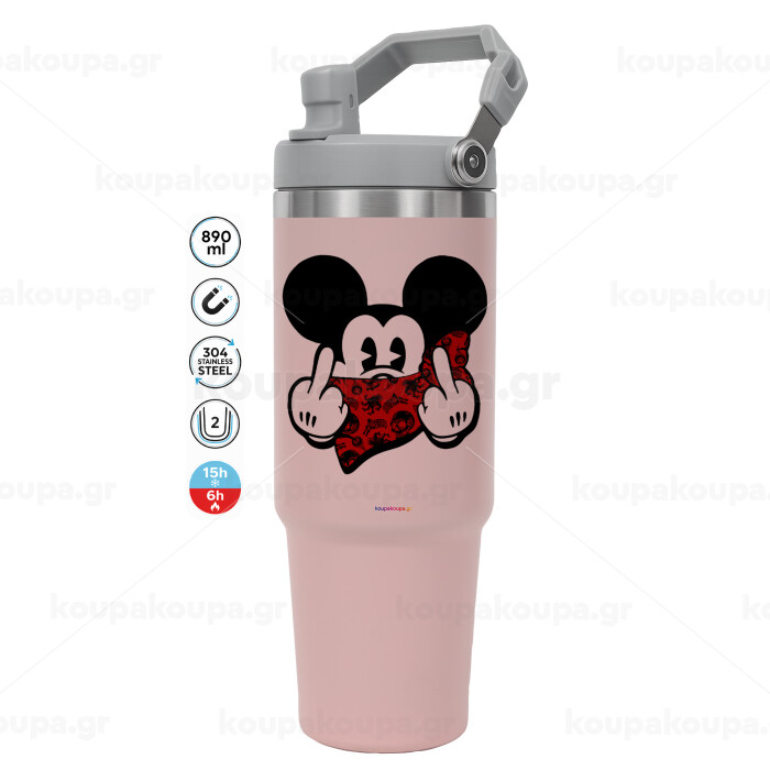 Mickey the fingers, Pink color, 890ml (30oz) stainless Steel Tumbler with Handle