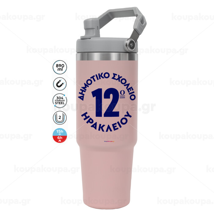 Έμβλημα Σχολικό λευκή, Pink color, 890ml (30oz) stainless Steel Tumbler with Handle