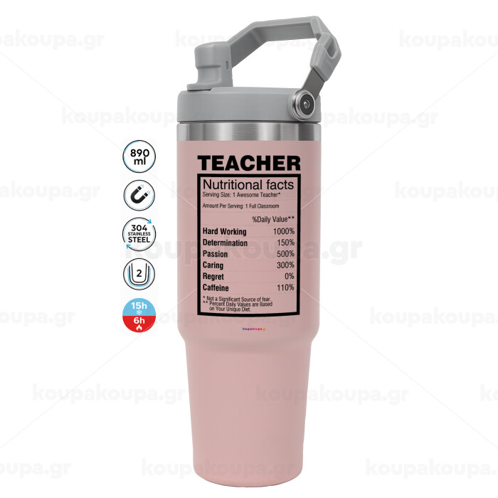 teacher nutritional facts, Pink color, 890ml (30oz) stainless Steel Tumbler with Handle